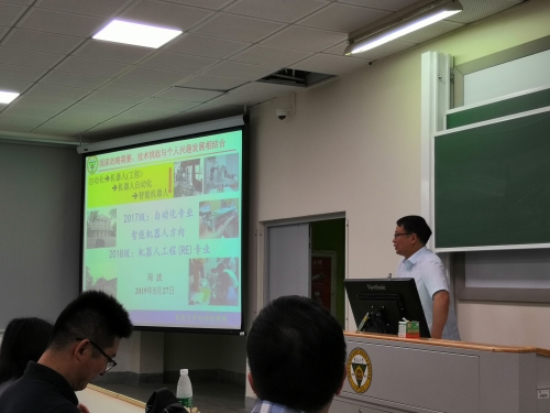 2019年5月27日中午,2026世界杯官方合作网站在九龙湖校区召开2018级专业分流、2017级方向分流介绍会暨诚信教育年级大会。院长助理张凯锋老师对我院大一分专业和大二分方向的政策进行了整体介绍,金立左、牛丹、张亚和周波等四位老师分别对智能信息处理、控制工程、控制科学和智能机器人(机器人工程)等四个方向,就实践应用、课程体系、师资力量、就业方向等内容进行了详细介绍。