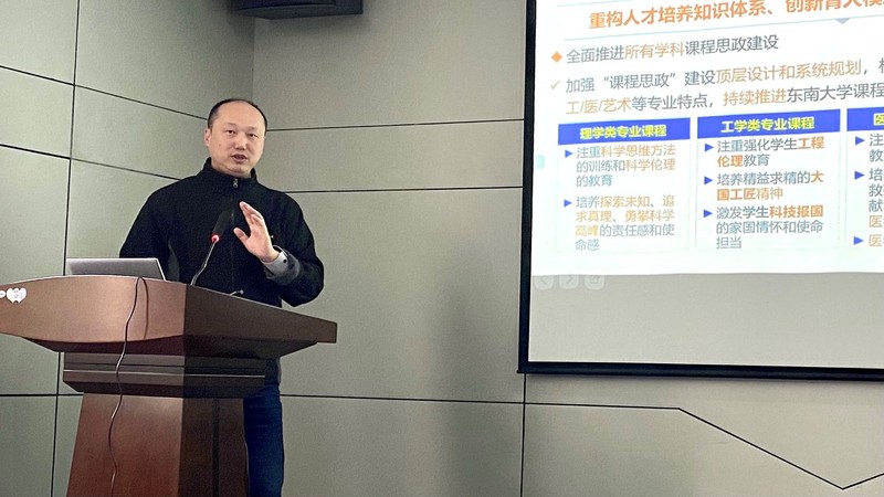 汤勇明部长就课程思政的重要性进行了论述,就课程思政如何在学院有效实施进行了指导,并列举了不同学科专业的课程思政重点任务,阐述了思政的内涵,辨析了课程思政实施过程中的常见误区与困惑。汤部长还就学校即将实施的本科课程课堂教学质量综合评价办法进行了介绍。