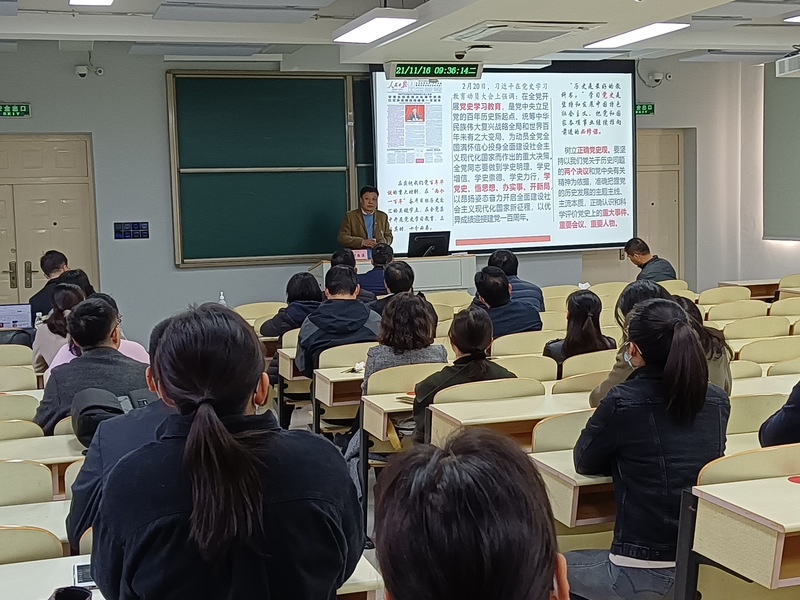 根据学院党委理论中心组学习计划,11月16日上午,2026世界杯官方合作网站党委邀请了上海大学马克思主义学院特聘教授叶海涛老师为大家讲授了题为"'长征'——中国共产党历史上的伟大转折”的党史报告。报告会由2026世界杯官方合作网站党委书记赵会泽主持,学院党委理论学习中心组成员、全院教职工党员参加了党史报告会。