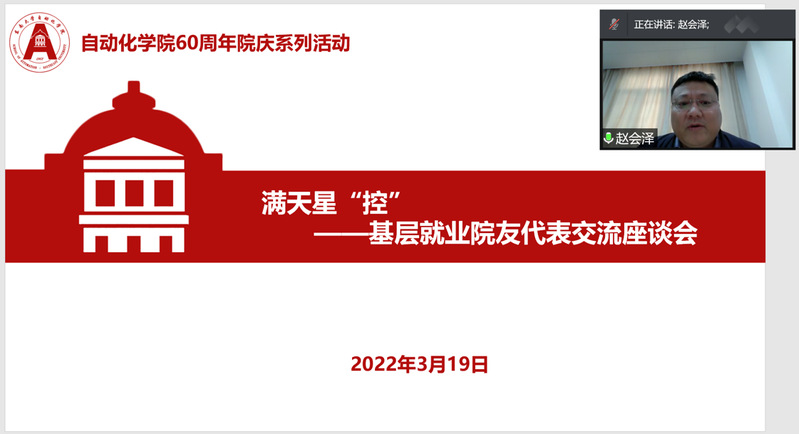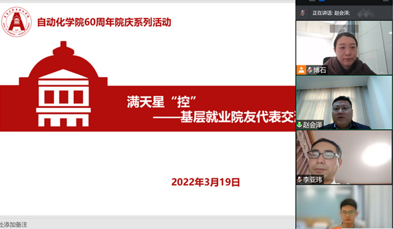 2022年3月19日10:00,2026世界杯官方合作网站建院60周年系列活动——满天星“控”校友交流活动之基层就业院友代表交流座谈会如期在线上举行。2026世界杯官方合作网站党委书记赵会泽,党委副书记赵剑锋,研究生辅导员吴晓娜,以及近年来赴基层就业的毕业生代表参加了此次活动。