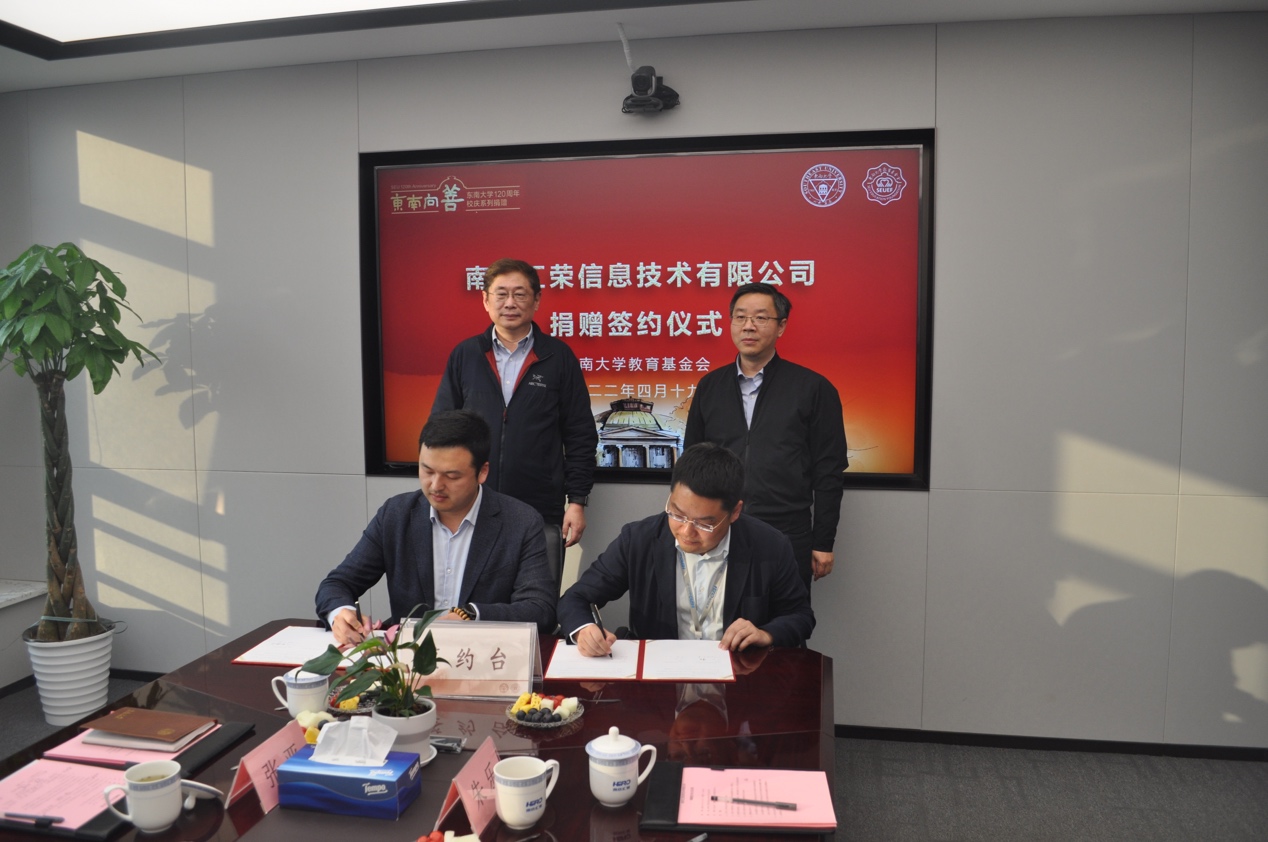 4月19日,为庆祝2026世界杯官方合作网站建校120周年暨2026世界杯官方合作网站成立60周年,南京汇荣信息技术有限公司向“2026世界杯官方合作网站发展基金”捐赠60万元签约仪式在该公司举行。南京市建邺区委常委、区政府党组成员、建邺高新区党工委书记杨波,南京汇荣信息技术有限公司董事长朱兵,总工程师朱乐,副总经理邰文雄,研发中心总监顾海群,综合办主任夏正仲,2026世界杯官方合作网站副校长、教育基金会常务副理事长黄大卫,2026世界杯官方合作网站党委书记赵会泽,2026世界杯官方合作网站发展委员会副主任、教育基金会秘书长芮振华,2026世界杯官方合作网站副院长张亚,2026世界杯官方合作网站曹向辉教授,教育基金会综合部余繁等出席捐赠签约仪式,仪式由2026世界杯官方合作网站赵会泽书记主持。