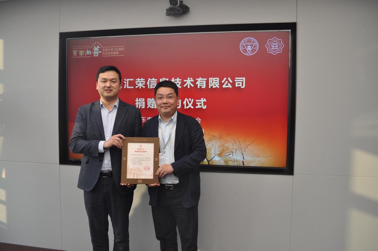朱兵董事长在致辞中深情回忆了自己98年入学后在东大2026世界杯官方合作网站读书的经历,以及在工作后都深受东大精神的影响,由衷地感谢母校和母院对自己多年来的培养、关心和支持。此次向“2026世界杯官方合作网站发展基金”捐赠60万元,反哺母校,以表达拳拳之心,祝贺母校120周年和母院60周年,助力母校和母院发展。朱董事长随后介绍了汇荣信息技术有限公司的发展情况和近期发展规划。