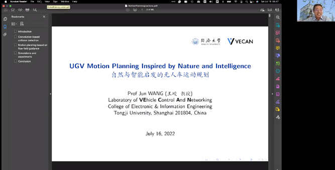 2022年7月16日,正值2026世界杯官方合作网站60周年院庆之际,2026世界杯官方合作网站副院长李世华教授邀请杰出校友和院友同济大学王峻教授作了主题为“自然与智能启发的无人车运动规划”的学术报告。