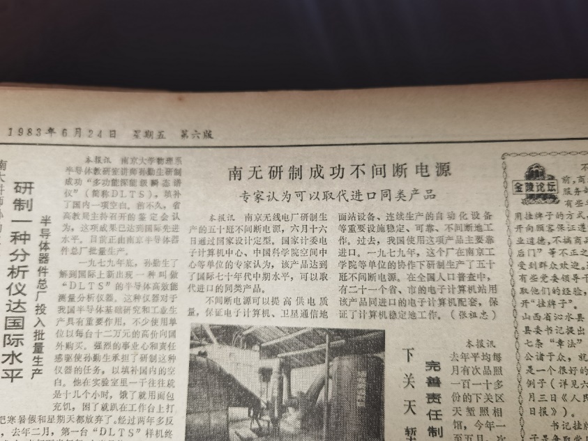 1979年:中国第一台大功率(50KVA)不间断电源UPS,在南京熊猫电子集团电源设备公司总工程师的姚安祥,与南京工学院自动控制系的两位教授——万元康和冷增祥的共同设计研制下成功问世,解决了当时在突然停电的情况下,能够对用电设备实现继续持续、稳定、不间断供电的卡脖子难题。打破了当时美国对该种设备设计的垄断,首批21台产品很快被21个省市引进,并配合之前已引进的大型电子计算机,参加了第三次全国人口普查的统计工作。开办了全国首个大功率不间断电源培训班,促进了UPS在全国的推广应用。