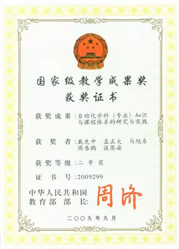 2009年:戴先中教学团队获国家级教学成果二等奖;“基于神经网络逆的软测量与控制技术及其应用”(戴先中等)获得国家技术发明奖二等奖。
