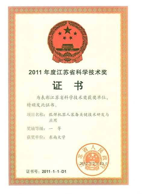 2006年:戴先中教授所带领的工业机器人团队以中厚板大型复杂件焊接为突破口,于2007年10月,与昆山华恒焊接股份有限公司合作,自主研发了国际先进水平“昆山1号”6 轴焊接机器人与11轴中厚板焊接机器人成套装备系列产品,并研发出我国第一条装载机车桥和第一条船用管-管、管-法兰机器人焊接生产线,整体达到国际先进水平,加强了国防建设的安全,经济与社会效益巨大,2012年获江苏省科技进步一等奖。
