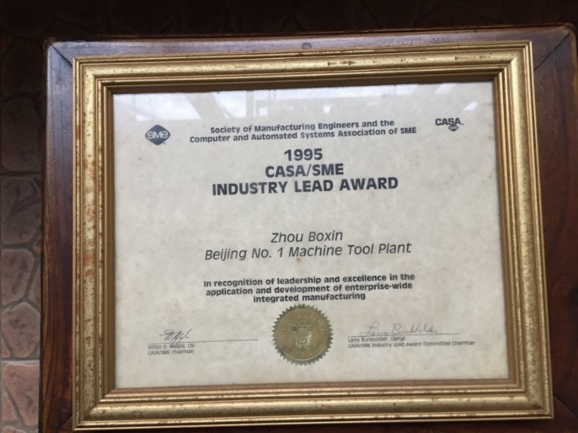 到美国制造工程师学会领奖照片(右二为周伯鑫)