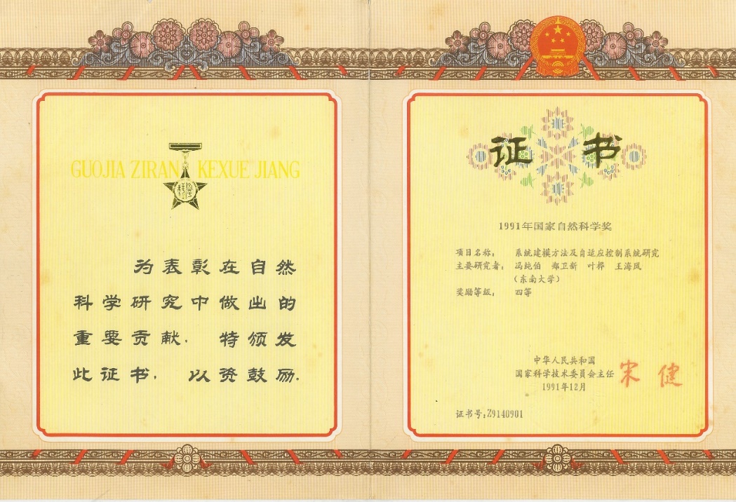 冯纯伯获得国家自然科学四等奖