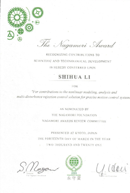 2022年:控制科学与工程再度入选国家首批“双一流”建设学科名单;李世华团队技术成果先后服务埃斯顿、中船重工、德国威能和威孚高科等12家高新技术企业,成功填补国内千赫兹级通用伺服驱动器和非道路车量高性能电控分配泵两大技术空白,完成国产化替代1项,研究成果于2020年获得机电系统领域著名国际学术奖项-永守赏(Nagamori Awards),2022年获日内瓦国际发明展金奖。