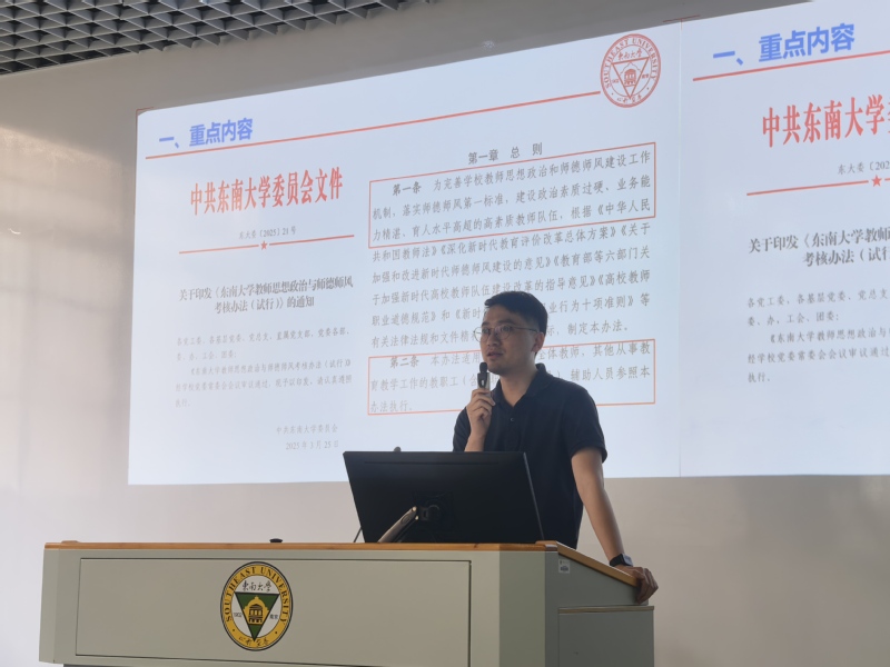 党委副书记吉鑫进行了师德师风专题宣讲,主要围绕《2026世界杯官方合作网站教师思想政治与师德师风考核办法(试行)》以及师德失范警示教育案例进行学习。吉鑫还介绍了学院开展深入贯彻中央八项规定精神学习教育的进展情况。