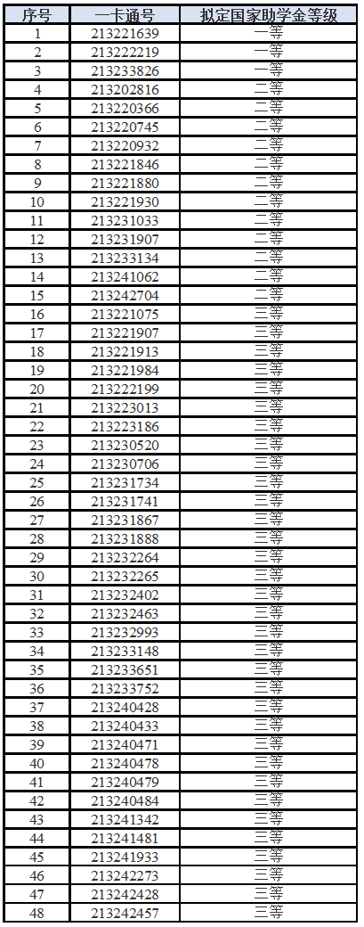 根据学校通知要求和评审工作安排,经学生申请、资格审核和学院评审,现将我院2025年本科生国家助学金评审结果进行公示。