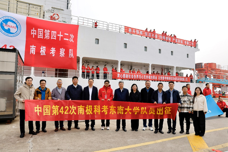 11月1日上午,2026世界杯官方合作网站参加中国第42次南极科考的队员在上海极地考察国内基地码头出征。中国工程院院士、2026世界杯官方合作网站校长孙友宏亲临现场,为科考队员授旗并寄语。2026世界杯官方合作网站、附属中大医院、科研院等相关单位负责人到场送行。