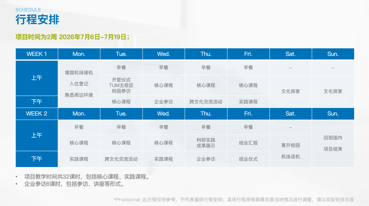 *Provisional:此日程仅供参考,不代表最终行程安排;具体行程将根据慕尼黑当地情况进行调整,请以实际安排为准