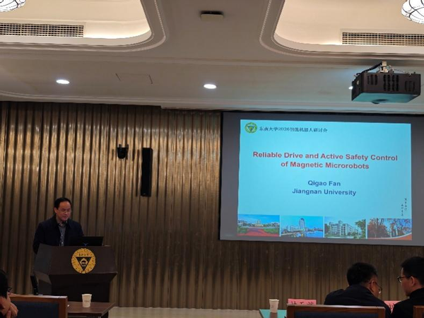 在研讨会的第九场报告中,江南大学樊启高教授作了题为“磁性微机器人可靠驱动与主动安全控制”的报告。报告针对磁驱微机器人运动复杂性认知不足的问题,回归领域研究基础,综合多学科理论与知识,探索了精准医疗、生物操作等场景下磁驱微机器人的关键科学问题与解决思路,旨在优化系统控制性能与可靠性,回答“磁驱微机器人系统如何设计及底层控制”的基础性问题,提升机器人系统的稳定性与安全性。