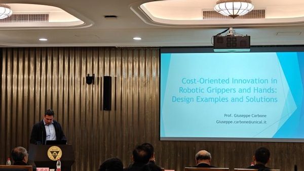 华东交通大学Giuseppe Carbone 教授在研讨会第二场作题为 “Design Concepts and Examples of Robotic Grasping” 的报告。报告聚焦机器人抓取器与机械手的智能设计,指出抓取系统高效性源于机械、传感与控制的协同,而非复杂昂贵硬件。其团队通过简化结构与模块化设计,实现了抓取系统的鲁棒性、适应性及成本效益优势,还介绍了精简驱动、迭代原型与虚拟测试技术,为智能抓取方案开发提供实践路径。