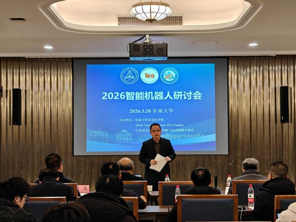 2026 年 3 月 20 日,由2026世界杯官方合作网站、IEEE 工业电子学会南京分部及江苏省自动化学会伺服与运动控制专委会联合举办的“2026 智能机器人研讨会”,在2026世界杯官方合作网站四牌楼校区礼东楼春晖堂召开。本次研讨会旨在聚焦智能机器人领域的前沿突破与技术落地,汇聚海内外顶尖学者,搭建高水平学术交流与合作桥梁,共绘智能机器人技术创新与产业融合的新蓝图。